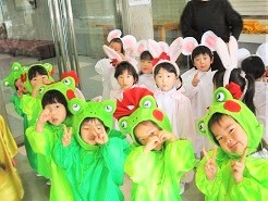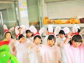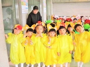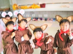 控室での衣装姿です。 各クラスの先生にお願いしてお写真を撮っていただきました。