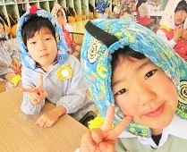 今回、新入園の子どもたちは初めて訓練を体験するということで