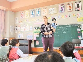 パペットを使って Hi! Bye! の練習です(^^)