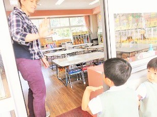 簡単な挨拶「Hi!と Bye!」の練習から始めました。