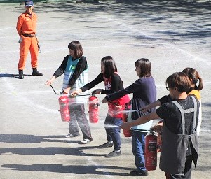 今月の避難訓練は ≪地震からの出火≫を想定して行いました。