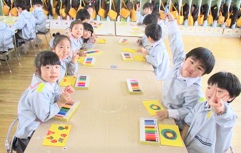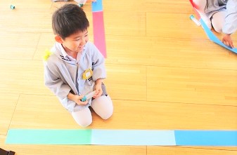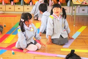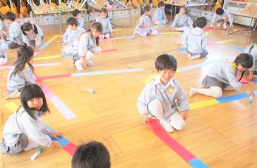 床でのり付けをしましたが、いつもと違う製作方法に つき組さんはのびのびワクワク!!