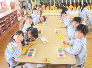 1月31日(金) 豆まき、お餅つきに向けて鬼のお面を作っています。