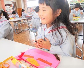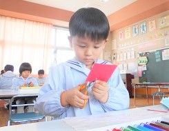 自分の好きな色画用紙を選び昨日鬼を折りました。