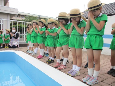 子ども達みんなでお祈りした後、プールのお約束確認もしました。