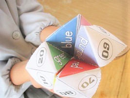 やり方を覚えて、友達とペアを組み、英語で質問し答えるという