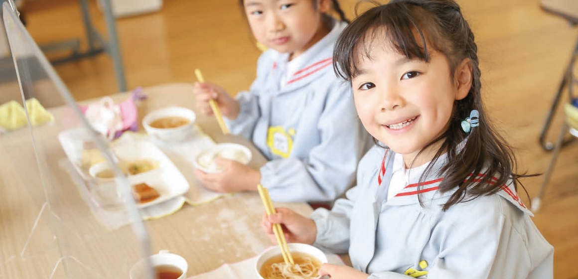 また、本園のお給食は安全・安心に心がけております。園医の先生ともしっかり連携をとり、衛生管理ときめの細かいアレルギー対応など、将来への食育や健康・環境管理・生活を含めて、幅広く指導を行っております。