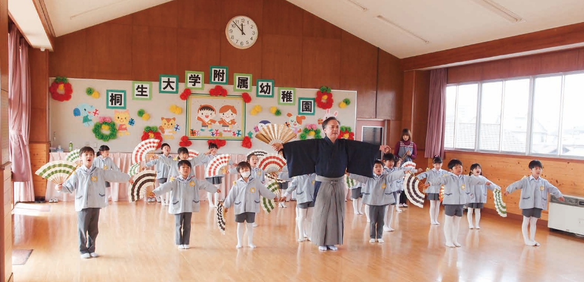 また、日本の心や誇りを自然に身につけてもらえるよう、能楽師の下平克宏先生によるお能や茶道、そして書道を楽しく習うことで、日本の文化に触れる機会も大切にしております。