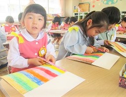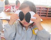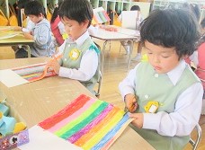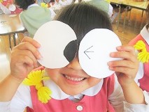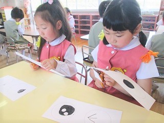 はさみを使ってみんなで吹き流しやこいのぼりの目を作りました。
