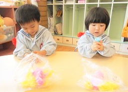 今日のこいのぼり作りの様子は、つぼみ組さんです。