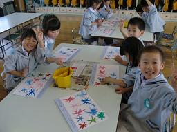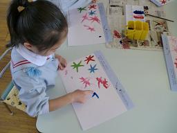 指に直接 絵の具を付け 画用紙に絵を描きます。