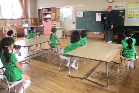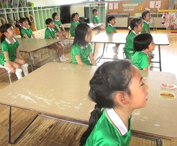 年長クラスになりますと、活動の中に≪お能≫が入ってきます。