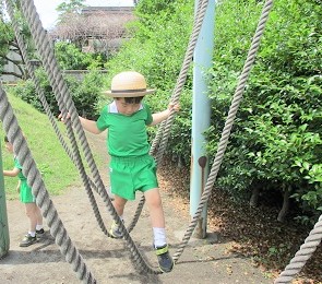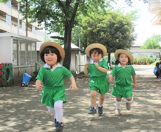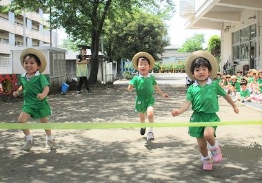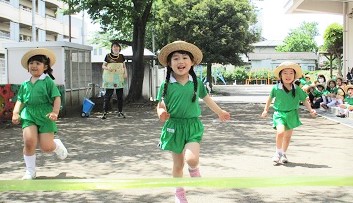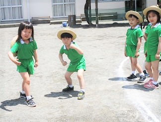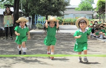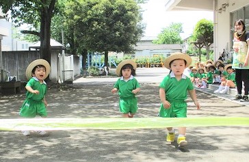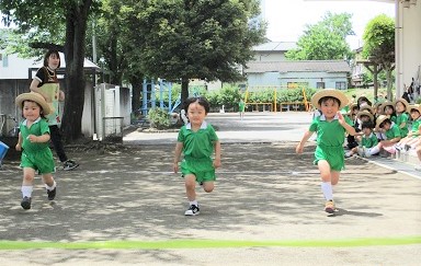 園庭でサーキットを行った後、徒競走の練習。