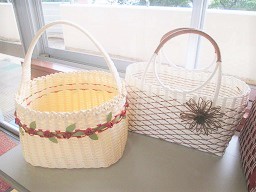 今日のエコクラフト教室では「かわいい小さなかご」を
