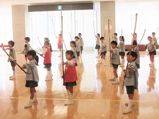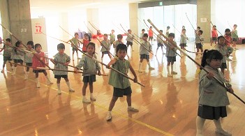 なぎなたの練習が始まるとピリッと凛々しく取り組んでくれました。