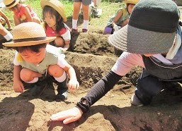 月組が畑に大根の種をまきました。