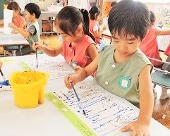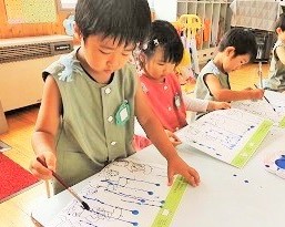 台風をイメージした子もいる絵の具遊びでした(^^)