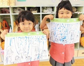 絵の具を使って、ザーザーと雨を降らせる≪絵の具遊び≫で楽しみました!