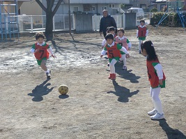 左右の足がクロスし、軸足が踏み込み足になる様に練習しました。