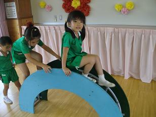 雨のため 遊戯室での練習です。
