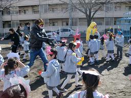 園庭を 小さな鬼達も大きな鬼も元気に走りました♪