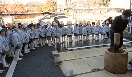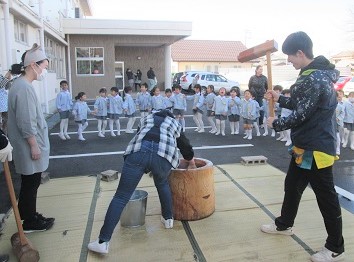 みんなで お餅つきを見ながら『よいしょ!よいしょ!』の掛け声(^^)/