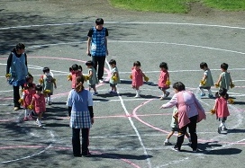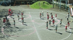 園庭でのお遊戯練習ができました。