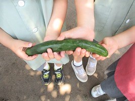 野菜の苗植えをしてから毎日のように観察していた月組さん。