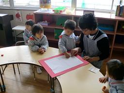 先生と一緒に貼ることがとても嬉しそうです♪