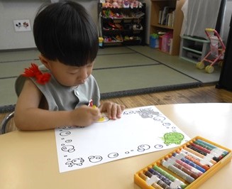 16日(日)に行われました≪お父さんと遊ぼう≫を思い出し、お絵描きをしました。