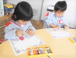 つぼみ組さんがお絵描きをしました。