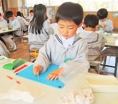 子供たちの大好きな粘土遊びの道具をお掃除しています。
