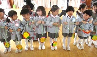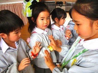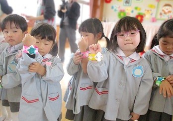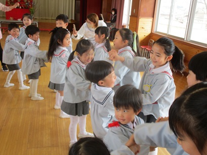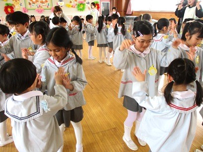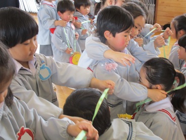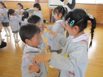 歌「アルプス一万尺」の替え歌とダンス、そして全クラスで協力して作ってくれた