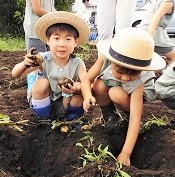 じゃがいもを掘る子供たちはじゃがいもに夢中(^^;)!