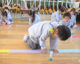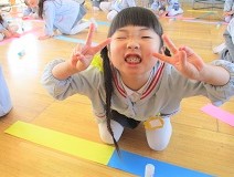 床でのり付けをしましたが、いつもと違う製作方法に つき組さんはのびのびワクワク!!