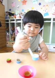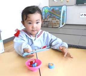 つぼみ組さんは、生活に密着したものを遊びの中に取り入れることで