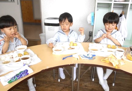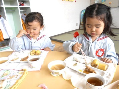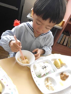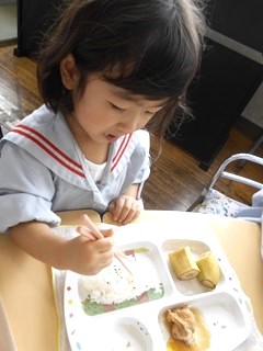 練習した後は、おいしいお給食をお箸を使って食べました。