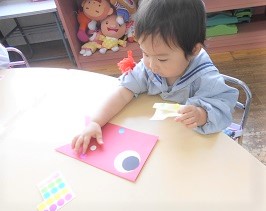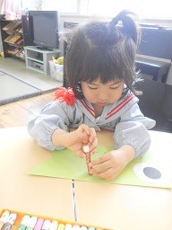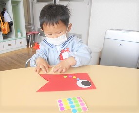 今日のこいのぼり作りの様子は、つぼみ組さんです。