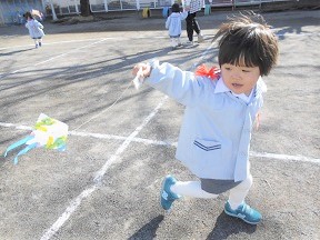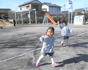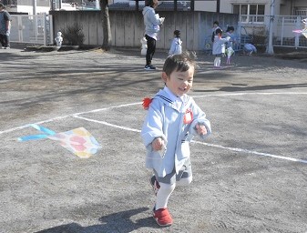風を受けて自分のたこが空に舞い上がる事に大喜びでした(^^)