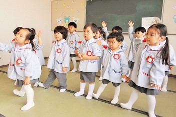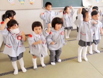 つぼみ組さんは、みんなでお遊戯を踊ります。