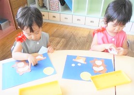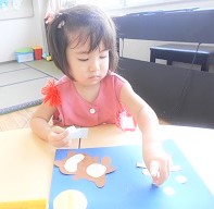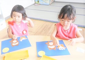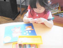 今日、つぼみ組さんが「季節のせいさく」に取り組みました。