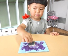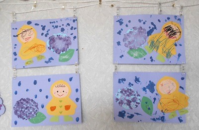スタンプした画用紙がきれいなアジサイに変身していました。