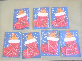 その後は糊付けをして、ブーツからはトナカイさんが顔を出し、完成です!!