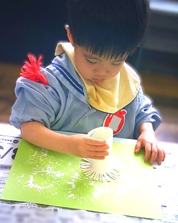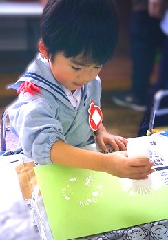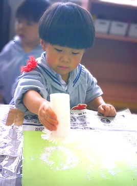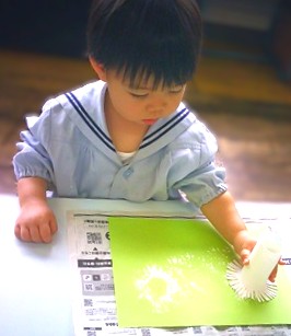 色紙に白い模様のお花がどんどん咲いていきますね!