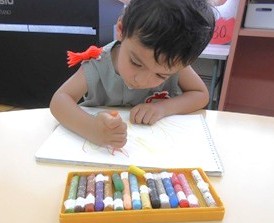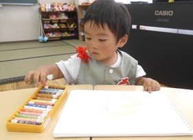 画用紙にクレヨンで自由に絵を描いた後に、