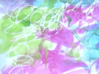 クレヨンが絵の具をはじいて浮き出てきます!!