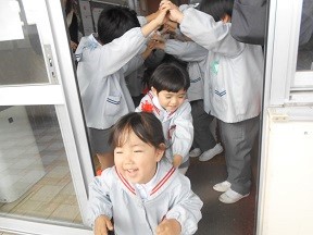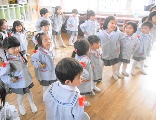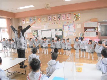 大きなクラスのお友達は小さなクラスのお友達に拍手をもらい