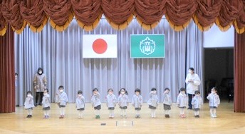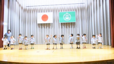 2歳児クラスのつぼみ組さんもクリスマス会練習の為