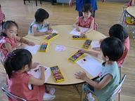 2歳児と3歳児クラスみんなで お友達のお顔の絵を描きました。