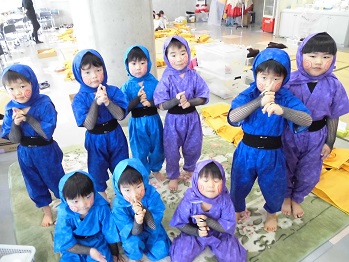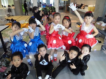 控室での衣装姿です。 各クラスの先生にお願いしてお写真を撮っていただきました。